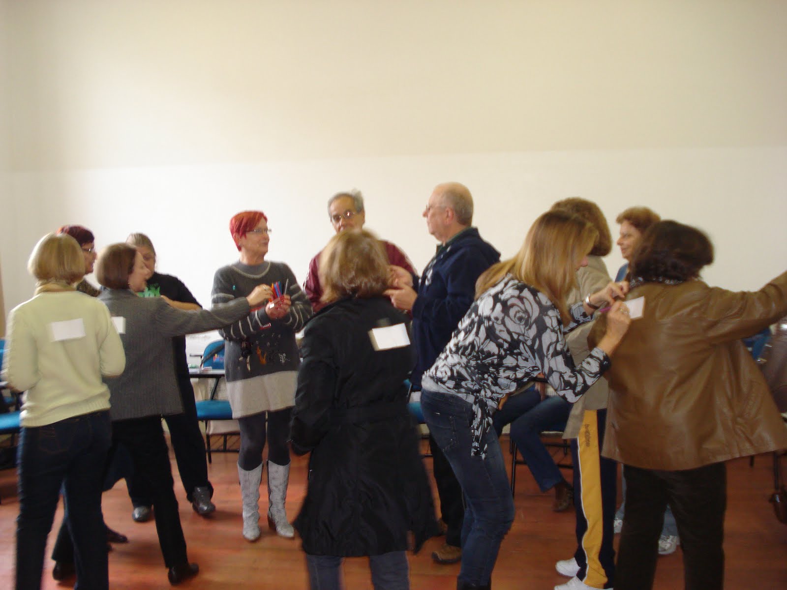 Hoje, 21/06, recebemos uma convidada especial - Maria Angélica, tia da Profe Carina Brunet. A simpática pedagoga Mª Angélica esteve em nossa escola para nos brindar com dinâmicas de grupo que ela aplica em turmas de várias faixas etárias e, com diferentes resultados. A nossa turma, como é de praxe, participou ativamente. Na 1ª dinâmica, tínhamos que escrever em um papel, colado às costas dos colegas, coisas a respeito deles - qualidades, defeitos, elogios ou críticas. Feito isso, deveríamos ler o que foi escrito sobre nós e argumentar. Foi muito interessante pois a cada leitura nos víamos com os olhos dos outros. Na 2ª dinâmica, tínhamos que escrever, num outro papel, atividades que o colega à nossa direita deveria cumprir - coisas variadas - o nome da dinâmica é: "feitiço contra o feiticeiro". É claro, soubemos depois, que a atividade deveria ser executada pelos próprios autores. Moral da história: "não faça aos outros o que não queres que te façam". Numa 3ª dinâmica, cada um de nós ganhou uma bala que deveria ser aberta sem o uso das próprias mãos, donde se depreende que deveria haver a colaboração de uns para com os outros. A foto registra um momento da 1ª dinâmica.